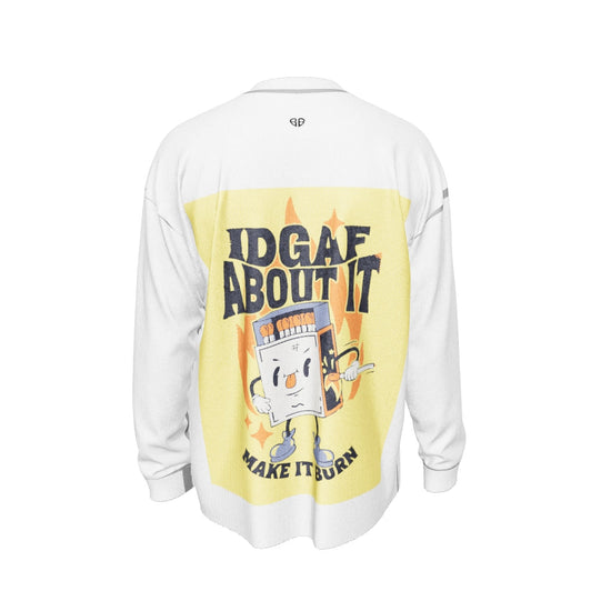 🎨 Diseño trasero: Gran gráfico con una rebelde caja de cerillos animada rodeada por la frase “IDGAF ABOUT IT” en tipografía retro, y sobre ello el icónico logo “BB” en negro.