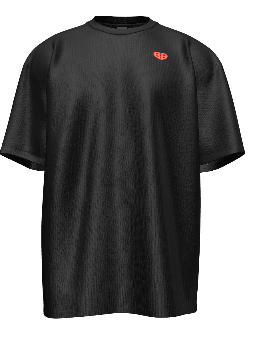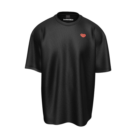 Estampado del logo Broken Boy en rojo , ubicado en el pecho izquierdo, representando resiliencia y autenticidad.