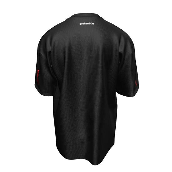 Estampado “brokenBOY” en blanco , posicionado en la parte superior de la espalda, reafirmando la identidad de la marca.